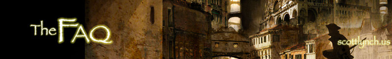 You can put this stuff on the web time and time again, and still nobody pays attention. ;) Ahem. The name of the series featuring Locke Lamora is the Gentleman Bastard sequence. Singular on the 'bastard.' Also, I frequently read that I have some truly ridiculous number of contracts that all happened overnight- that's not the case. I am under contract to Orion Books for six novels, no more and no less; five of them are Books I-V of the Gentleman Bastard sequence and the sixth is an unrelated work cleverly referred to as Untitled Lynch Number One. With two books delivered, I have four to go. These contracts did not all fall out of the sky simultaneously; they happened in steps over a two-year period.